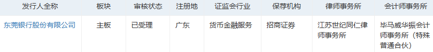 机构之家注意到,日前,深交所网站已对东莞银行上市进程进行了更新:从最新审核状态来看,为“已受理”。