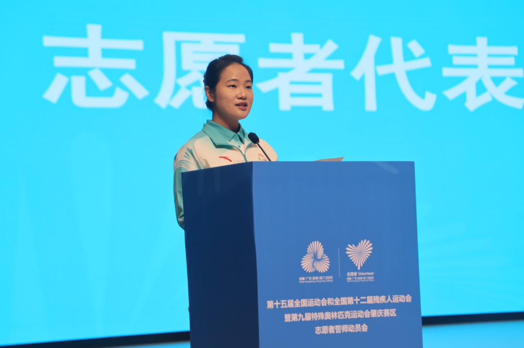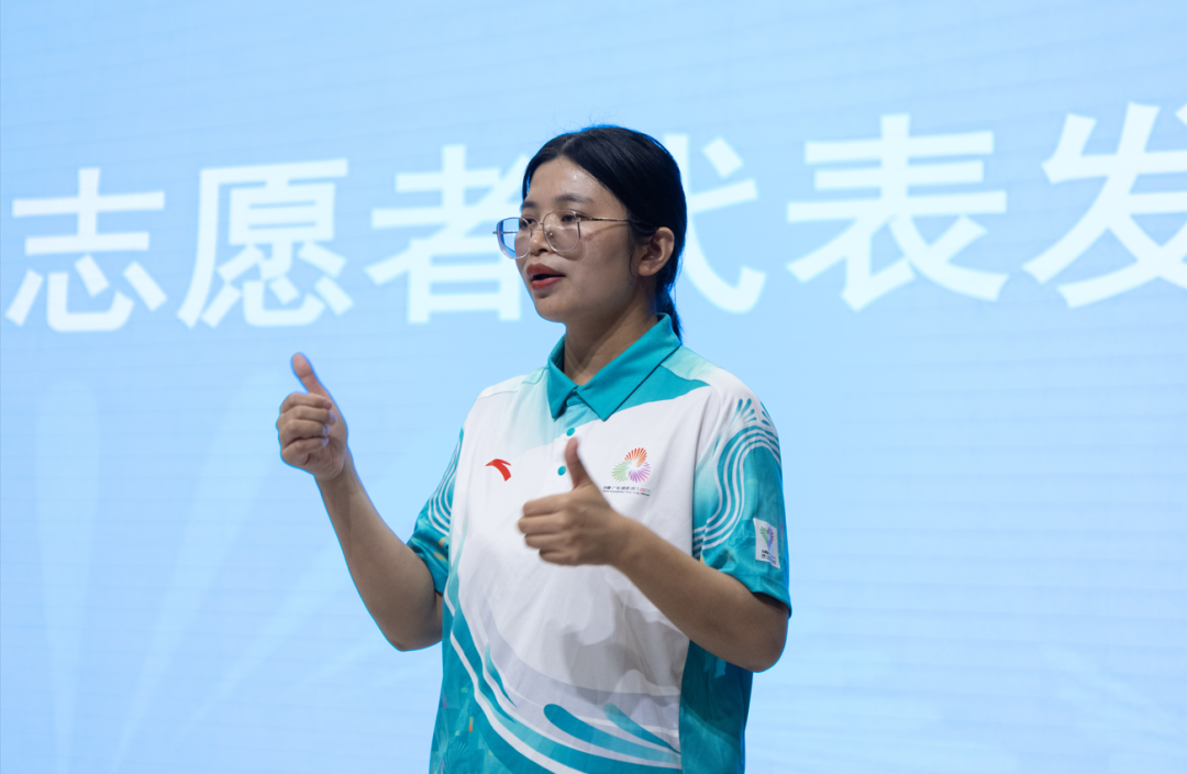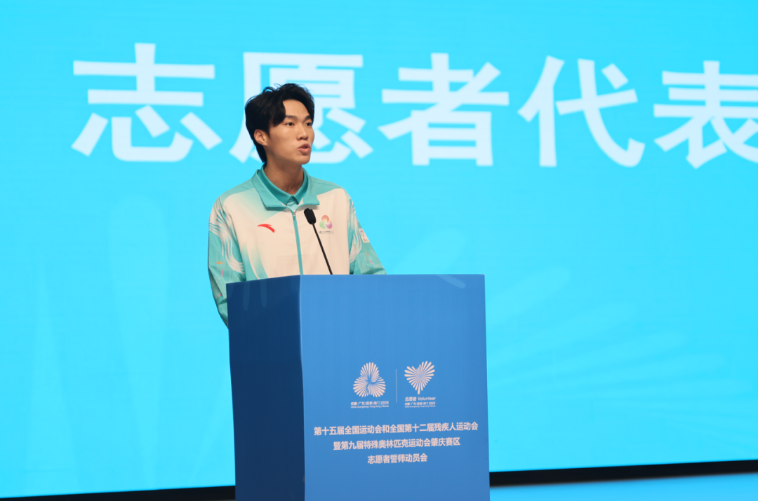 活动中,肇庆学院志愿者领队老师何艺珊和广州应用科技学院志愿者代表陈健作为赛会志愿者代表发言。何艺珊结合自身在粤港澳地区超过3500小时的志愿服务经验,鼓励志愿者以专业能力传递湾区融合的包容精神;陈健则分享了在体操、马拉松等赛事中为参赛者提供暖心服务的经历,并表示将以1158小时的志愿服务经验,全力以赴投身于十五运会体操赛事服务。