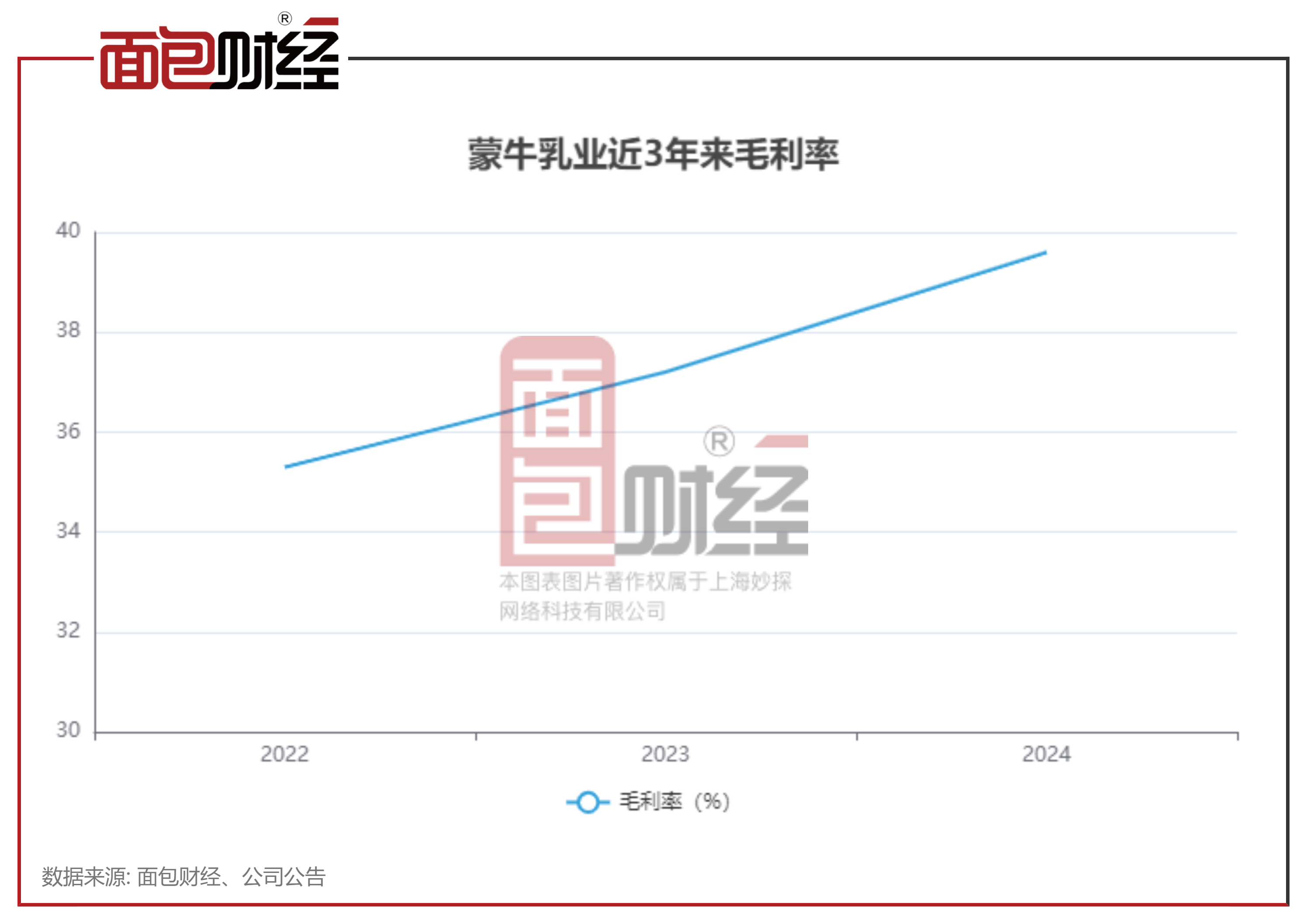 2024年,蒙牛乳业毛利率实现39.6%,同比提升2.4个百分点,经营利润率同比提升1.9个百分点至8.2%。