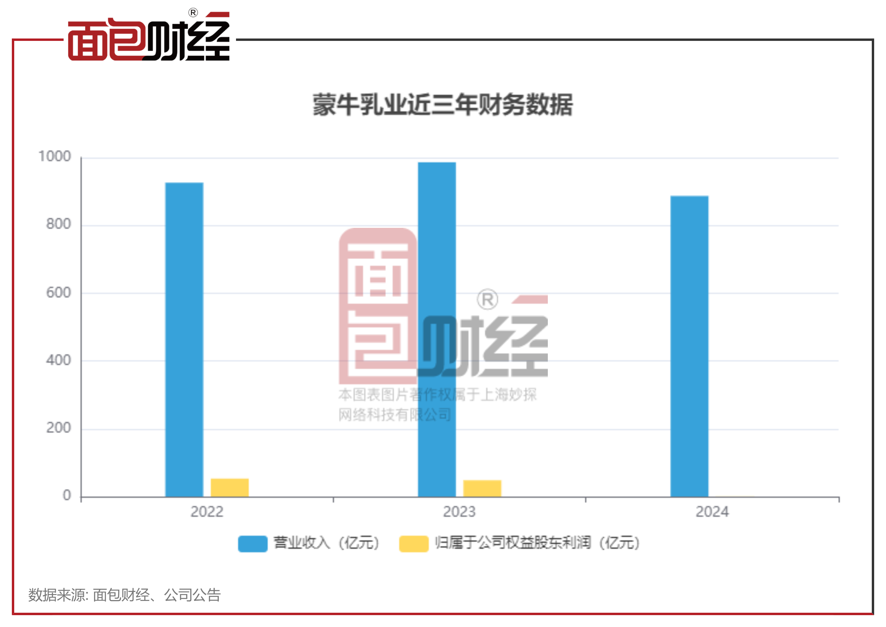 2024年,受乳制品行业供需不平衡、消费需求不及预期等因素影响,蒙牛乳业实现收入886.86亿元,同比下滑10.1%。